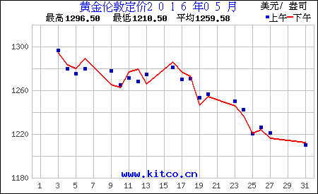 提供2016年5月的黄金价格查询,图表数据以美元/盎司黄金计价,黄金价格走势图仅供参考,本站对查询该历史金价数据导致的结果概不承担任何责任。