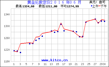 提供2016年6月的黄金价格查询,图表数据以美元/盎司黄金计价,黄金价格走势图仅供参考,本站对查询该历史金价数据导致的结果概不承担任何责任。