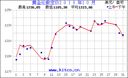 2018年10月伦敦黄金价格