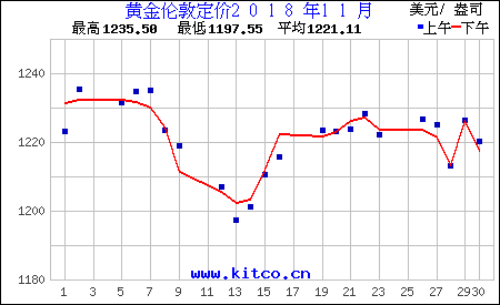 提供2018年11月的黄金价格查询,图表数据以美元/盎司黄金计价,黄金价格走势图仅供参考,本站对查询该历史金价数据导致的结果概不承担任何责任。