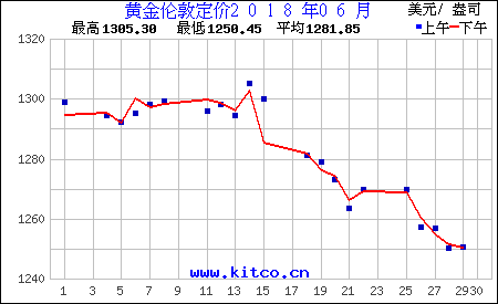 提供2018年6月的黄金价格查询,图表数据以美元/盎司黄金计价,黄金价格走势图仅供参考,本站对查询该历史金价数据导致的结果概不承担任何责任。