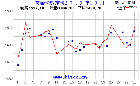 2019年10月伦敦黄金价格