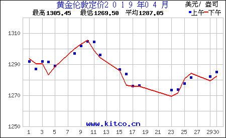 提供2019年4月的黄金价格查询,图表数据以美元/盎司黄金计价,黄金价格走势图仅供参考,本站对查询该历史金价数据导致的结果概不承担任何责任。