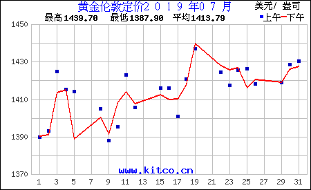 2019年7月伦敦黄金价格