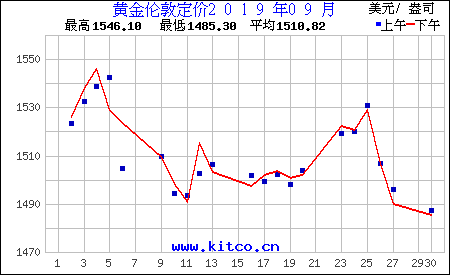 2019年9月伦敦黄金价格
