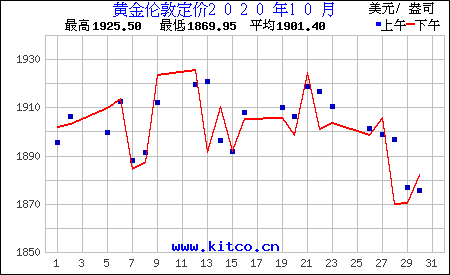 提供2020年10月的黄金价格查询,图表数据以美元/盎司黄金计价,黄金价格走势图仅供参考,本站对查询该历史金价数据导致的结果概不承担任何责任。
