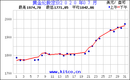 提供2020年7月的黄金价格查询,图表数据以美元/盎司黄金计价,黄金价格走势图仅供参考,本站对查询该历史金价数据导致的结果概不承担任何责任。