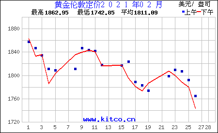 提供2021年2月的黄金价格查询,图表数据以美元/盎司黄金计价,黄金价格走势图仅供参考,本站对查询该历史金价数据导致的结果概不承担任何责任。
