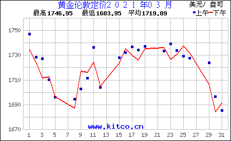 2021年3月伦敦黄金价格