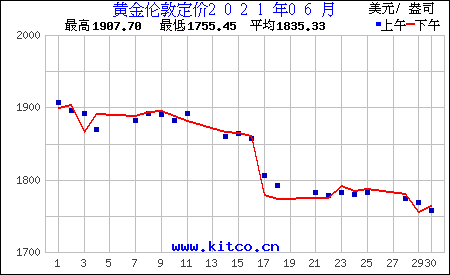 2021年6月伦敦黄金价格