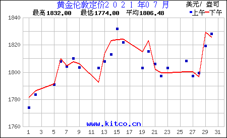 提供2021年7月的黄金价格查询,图表数据以美元/盎司黄金计价,黄金价格走势图仅供参考,本站对查询该历史金价数据导致的结果概不承担任何责任。