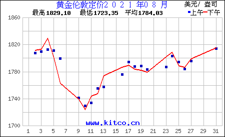 提供2021年8月的黄金价格查询,图表数据以美元/盎司黄金计价,黄金价格走势图仅供参考,本站对查询该历史金价数据导致的结果概不承担任何责任。