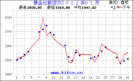 提供2022年3月的黄金价格查询,图表数据以美元/盎司黄金计价,黄金价格走势图仅供参考,本站对查询该历史金价数据导致的结果概不承担任何责任。