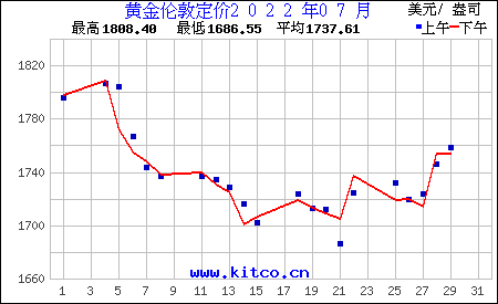 提供2022年7月的黄金价格查询,图表数据以美元/盎司黄金计价,黄金价格走势图仅供参考,本站对查询该历史金价数据导致的结果概不承担任何责任。